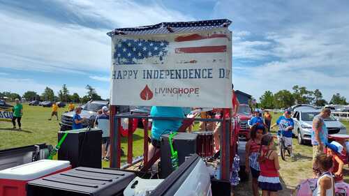 Each year we celebrate with our community during the Fourth of July parade by sharing God's love in song, hand outs to the families watching and invitations to VBS and regular church services at Living Hope.